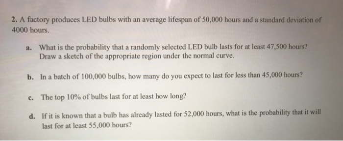 Solved 2 A Factory Produces Led Bulbs With An Average Chegg Com